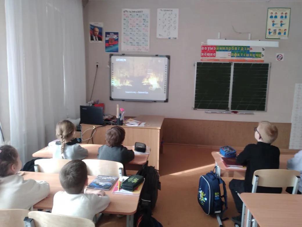 Ребята посмотрели видеоролик «Останови огонь», в котором говорилось, что 90% природных пожаров возникают по вине человека.