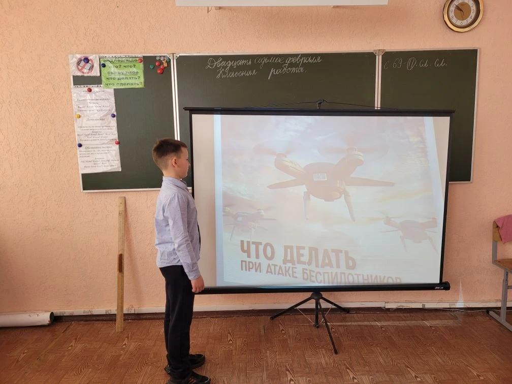 Учащиеся всех классов с интересом повторили правила поведения при угрозе БПЛА: от сигналов оповещения до действий в укрытии. Ребята активно обсуждали сценарии, делились знаниями и даже моделировали ситуации на примерах.
