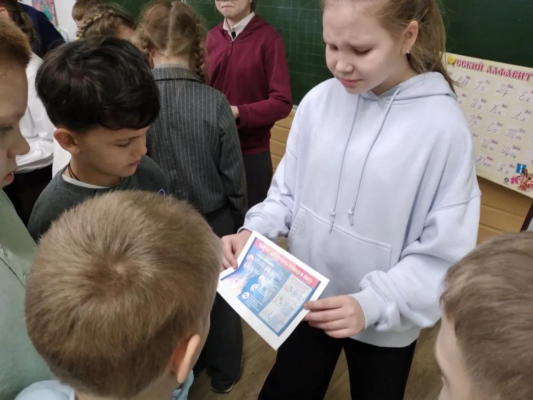Старшеклассники раздали ученикам начальной школы памятки «Как не допустить пожар в лесу»